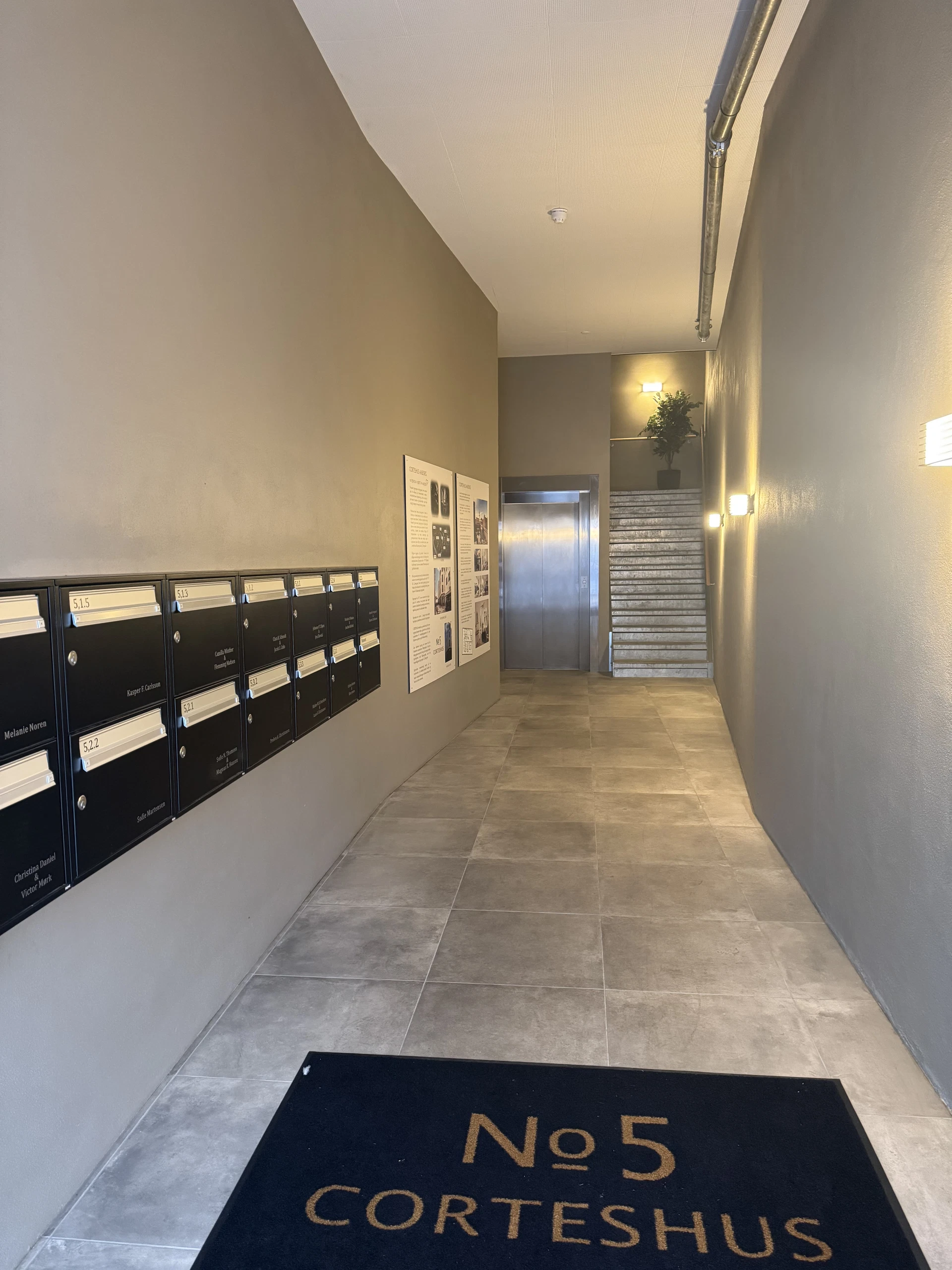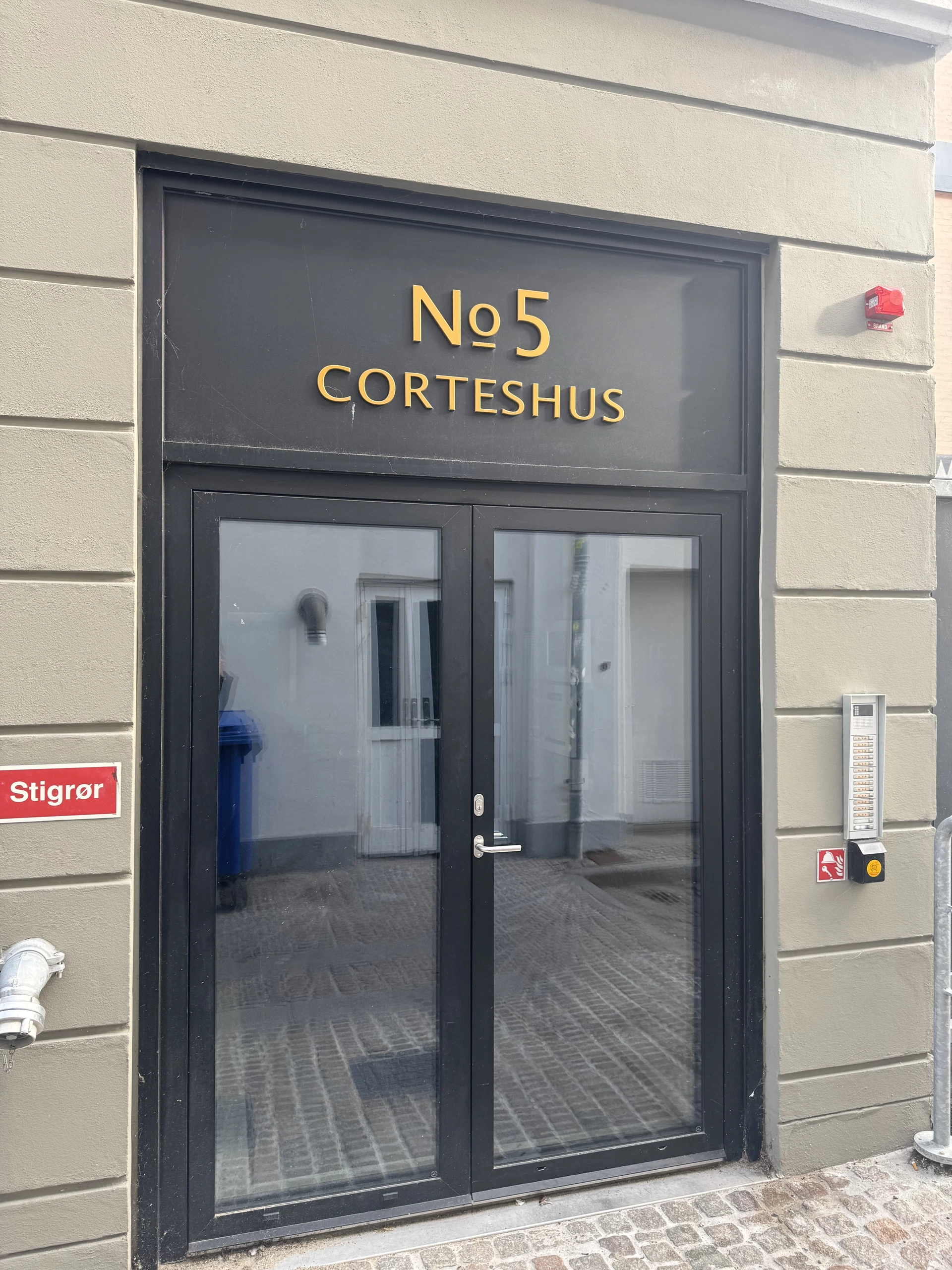 Corteshus er disponeret med butikserhverv i stueetage, og de øvrige etager er indrettet med boliger og fællesrum samt teknik- og depotrum - der er disponeret 13 boligenheder i varierende størrelser og indrettet som både 2 og 3 værelses lejligheder.