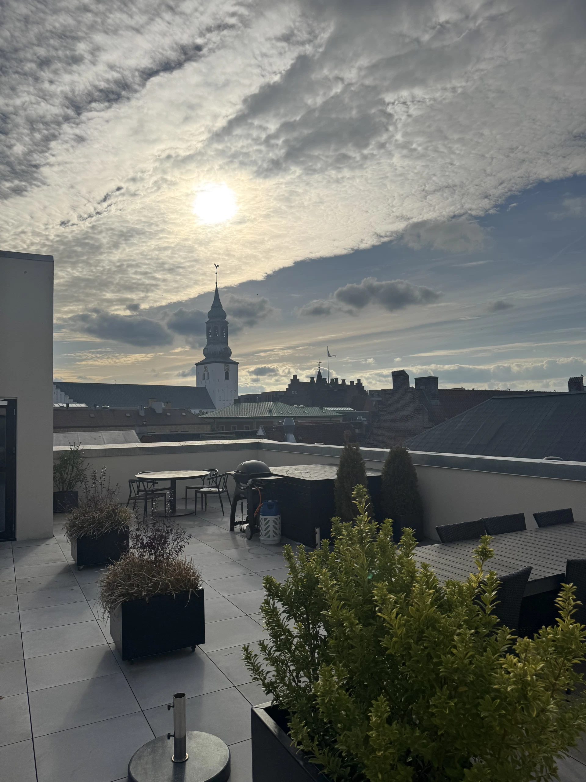 Udearealerne er sikret ved etablering af store fælles tagterrasser, der er placeret i det indre gårdrum bebeliggende på 2. sal samt endnu en tagterrasse der er beliggende på 3. sal over lave bygning langs Cortesgyde.