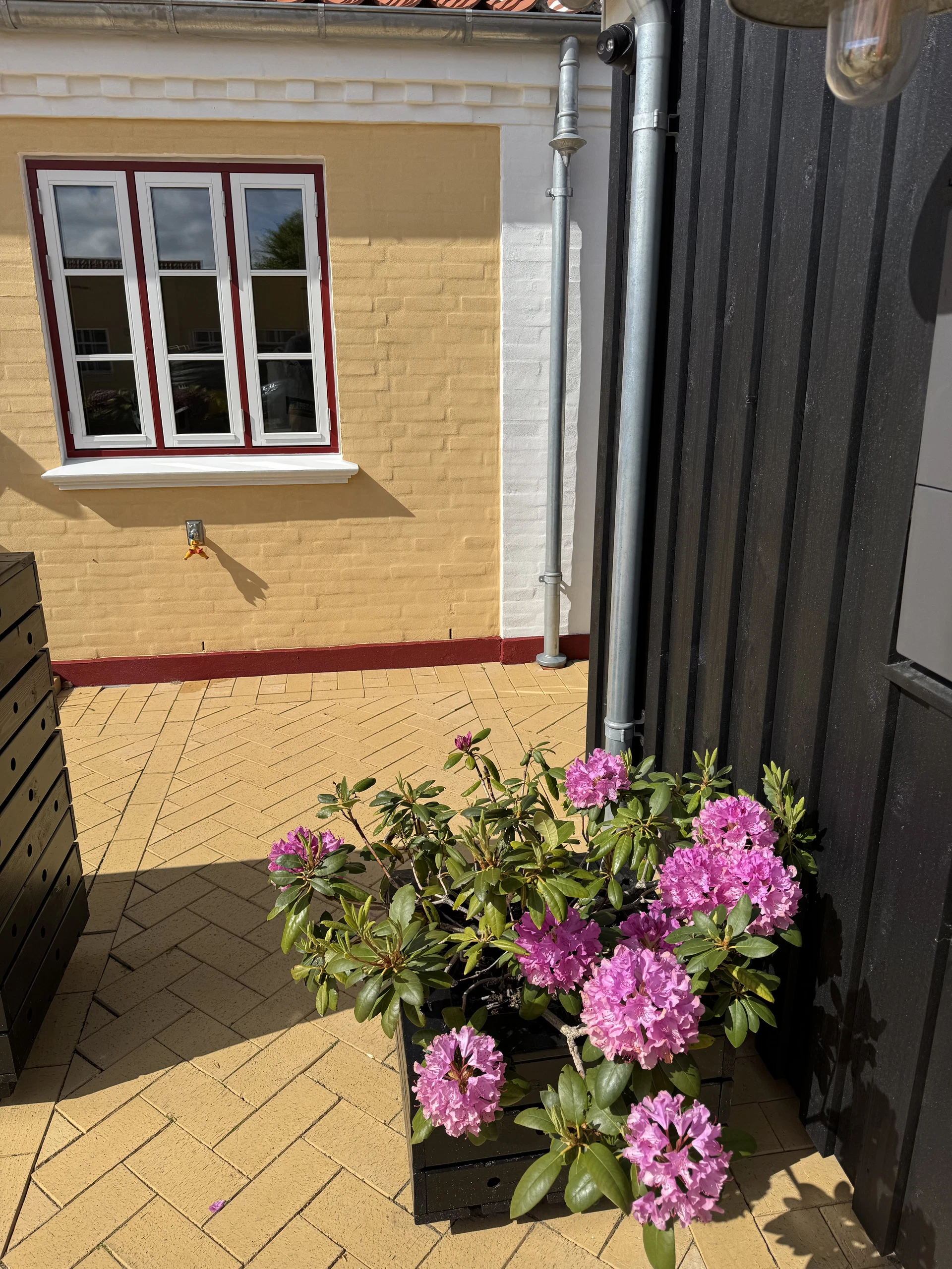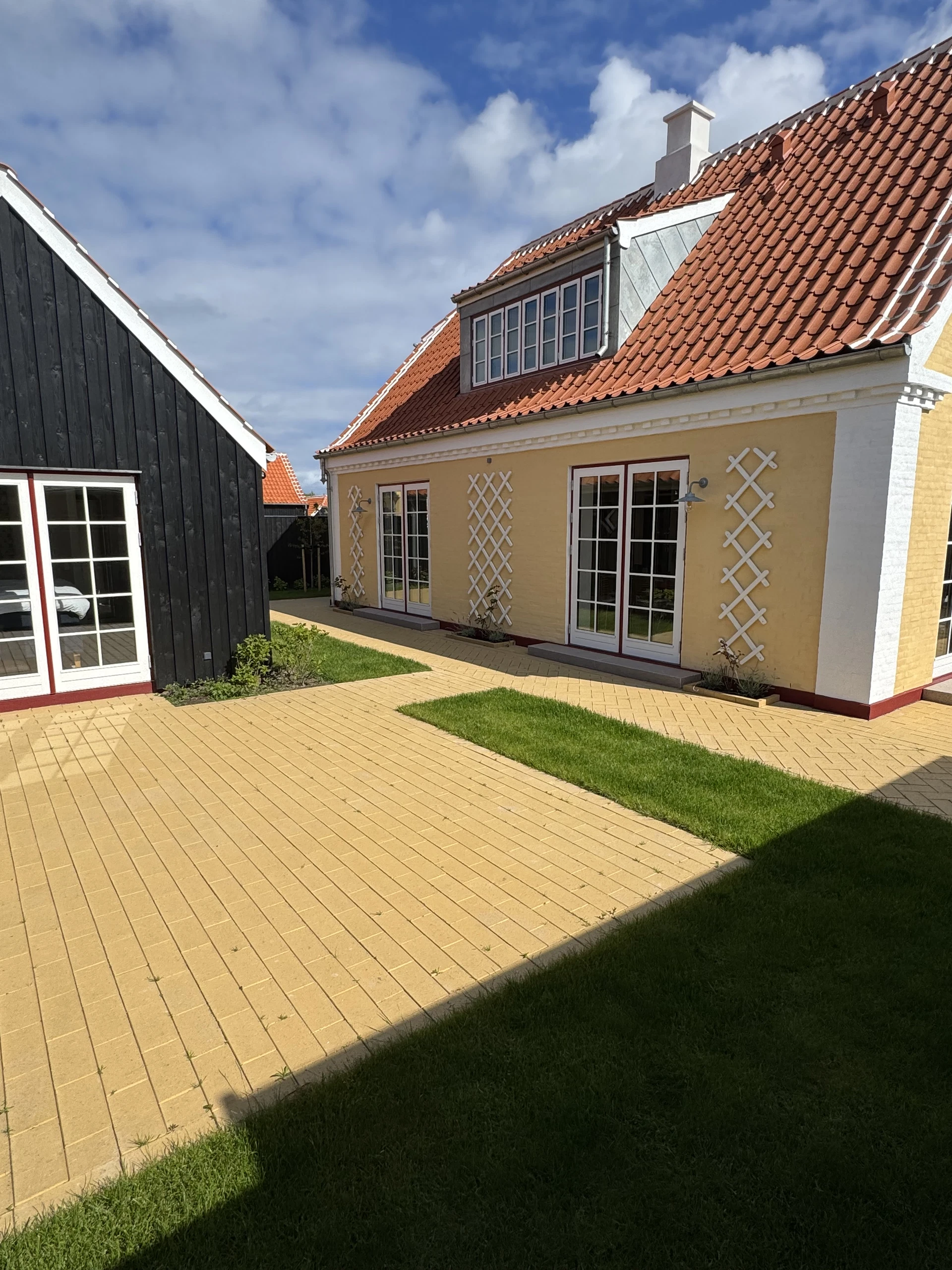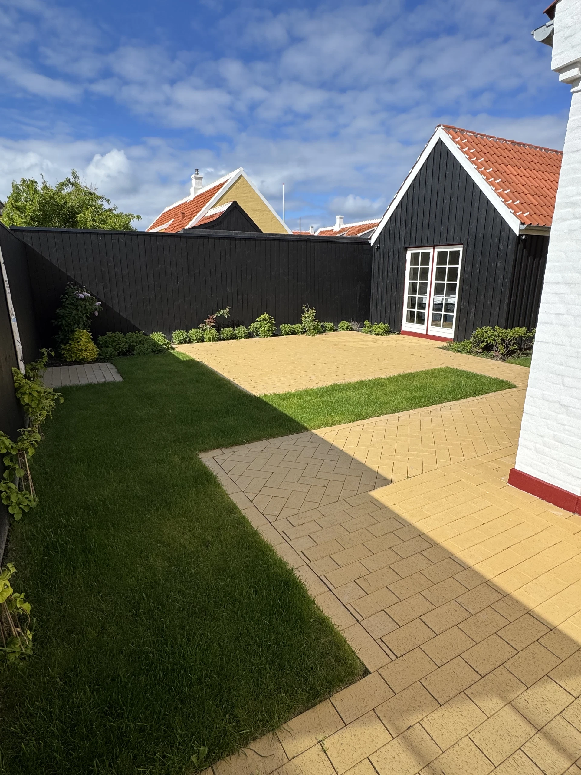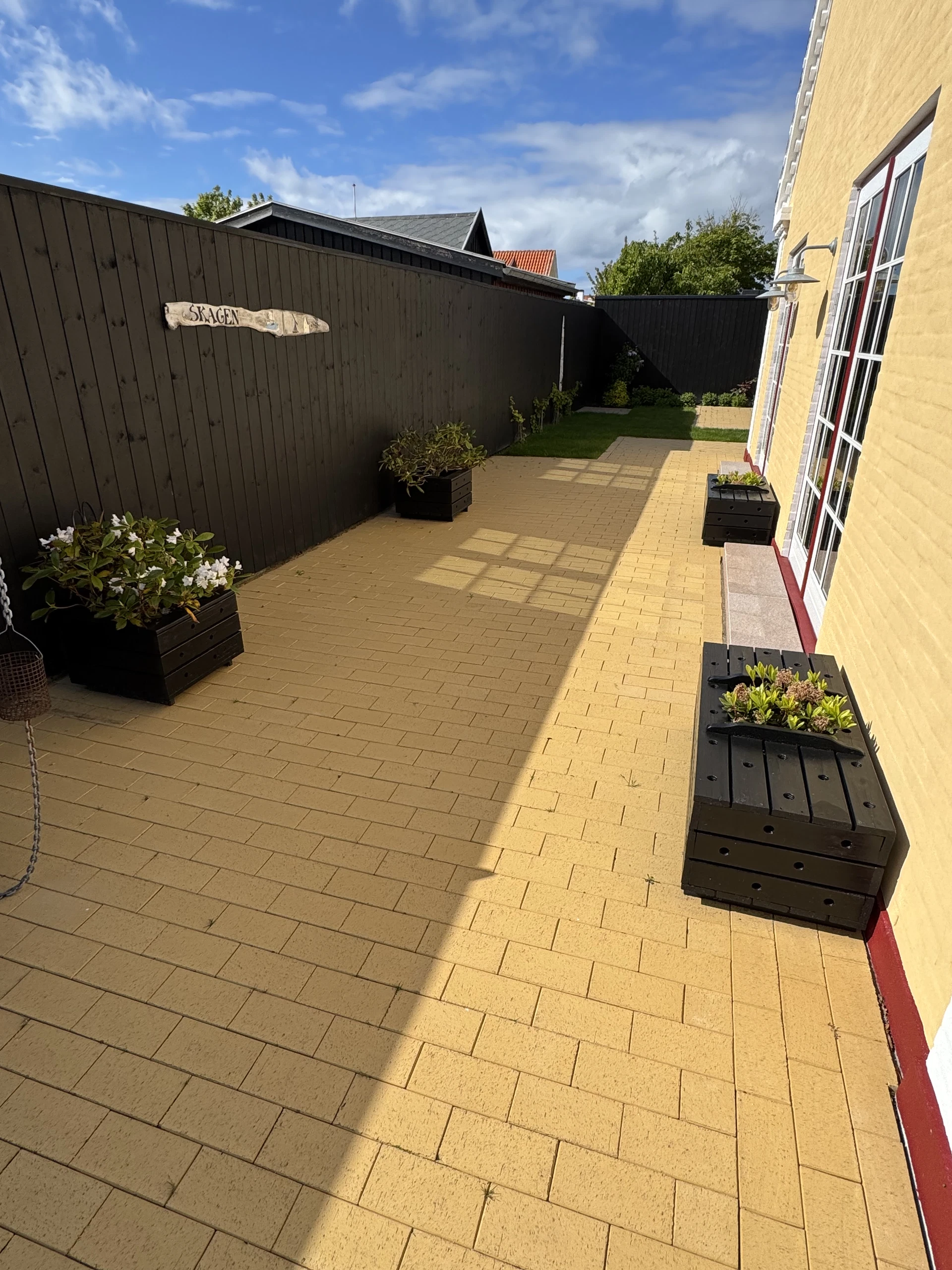 Privat gårdhavemiljø, terrasser og belægninger med gule teglsten fra Randers Tegl.