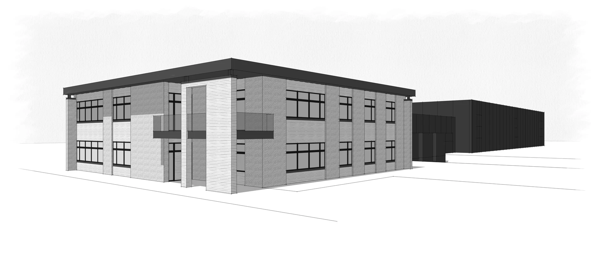 Vi har efterfølgende tegnet ny matchende tilbygning på 6.000 m² der er opført i forlængelse af lagerfacilliter.